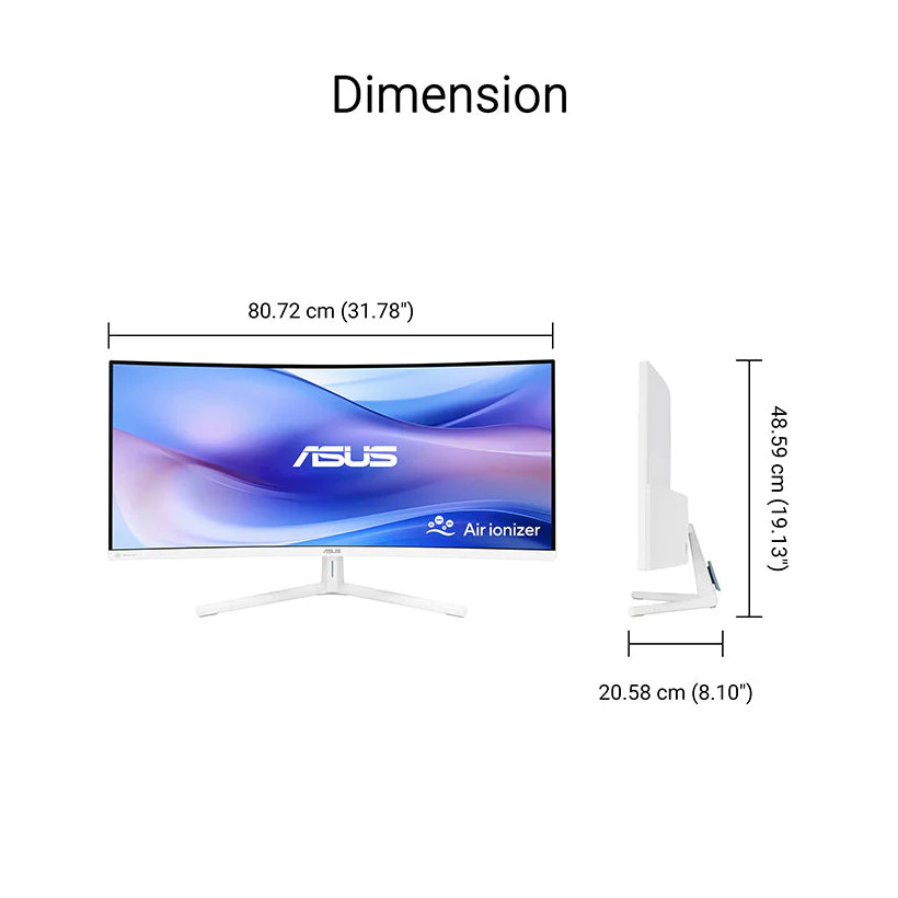 34 inch, WQHD (3440x1440), 1500R Curved, Frameless, 100Hz, Eye Care Monitor - Air Ionizer, SmoothMotion, Eye Care Plus technology, USB-C PD 65W, Stereo Speakers, Green Sustainability